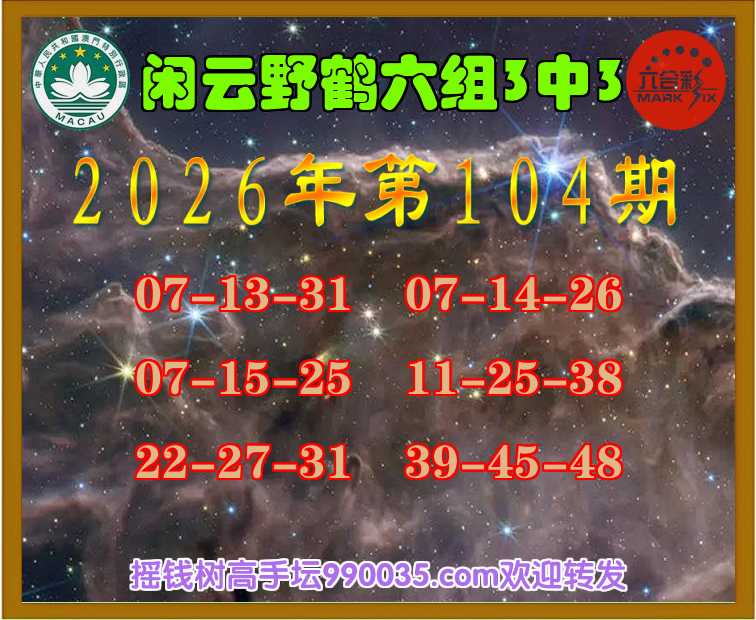 106期:【闲云野鹤】【六组3中3】 高手验证